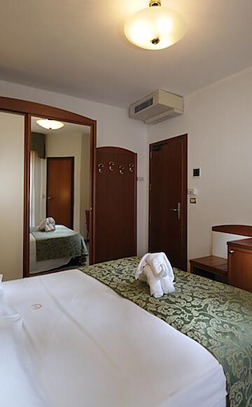 Zimmer mit Verbindungstuer ideal fuer Familien mit 2 Erwachsene und 2 Kinder oder 3 Erwachsene. Die Zimmer sind nach Osten ausgerichtet und haben allen Einrichtungen der Zimmer Classic. Strandservice mit zwei Sonnenschirmen und vier Sonnenliegen.