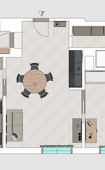 Die Kochnische ist mit einem Induktionskochfeld, einem Kühlschrank, einem Geschirrspüler und einer Spüle ausgestattet und bietet die Möglichkeit, Mahlzeiten selbst zuzubereiten.