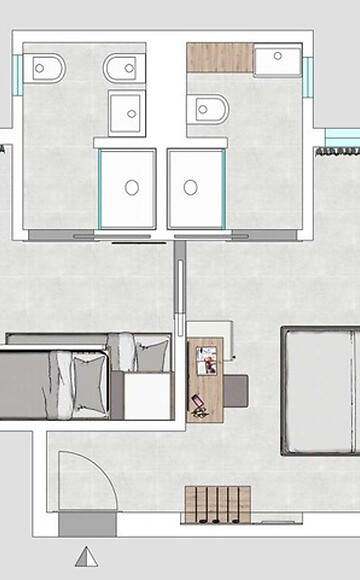 Questa tipologia di camera è composta da due stanze comunicanti con 2 bagni : una camera matrimoniale e una camera con un letto a castello.